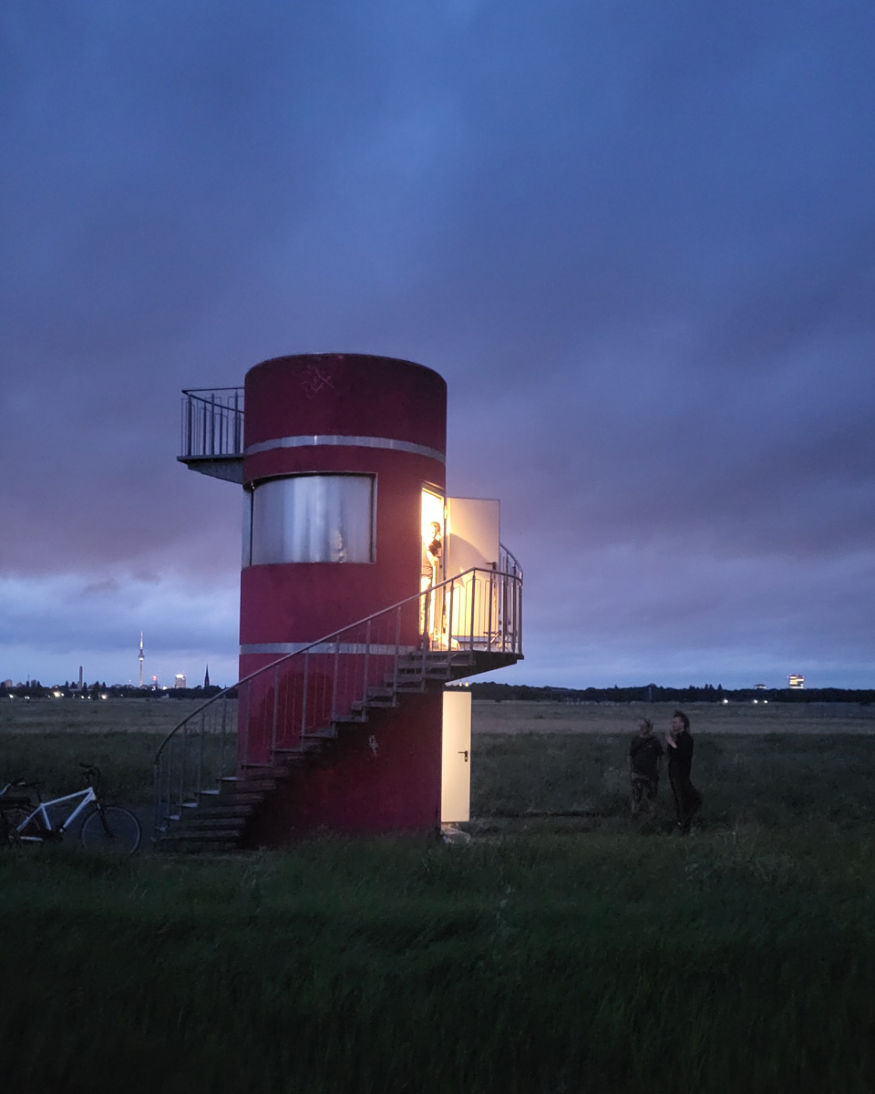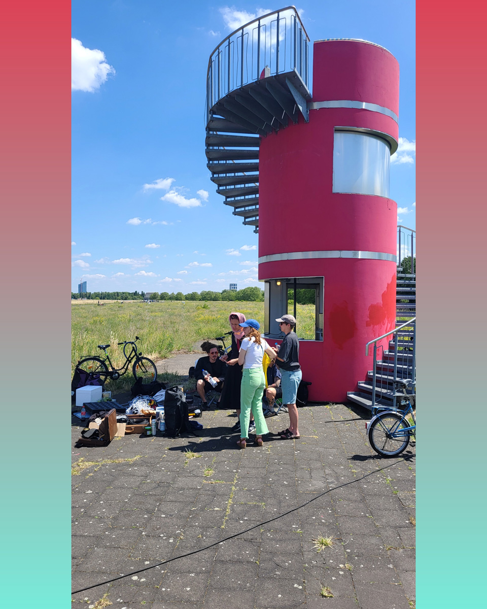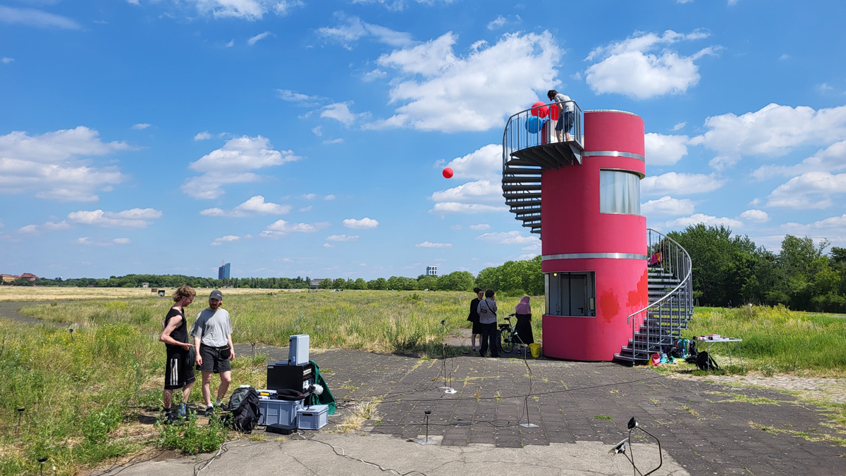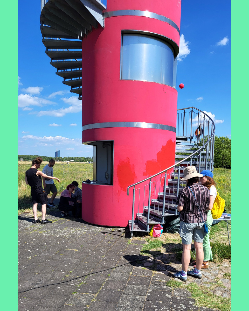 Against this backdrop, RADIO SCAPES understands the Tempelhofer Feld as a transmission space, where acoustic, historical and political impulses intersect and merge. The spatial basis for this is formed by the red tower at the southern end of the field, which is the base of POV Gallery, a new project and exhibition space with a focus on Eastern European art and culture. With its cylindrical architecture and open rooftop platform, the tower resembles an abandoned transmitter mast. For RADIO SCAPES, it becomes the starting point for sonic explorations and a temporary broadcasting station in public space.