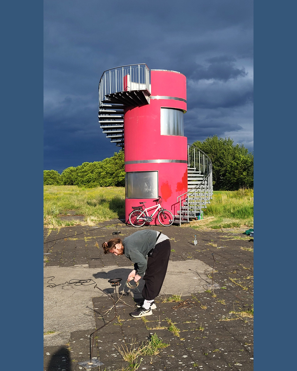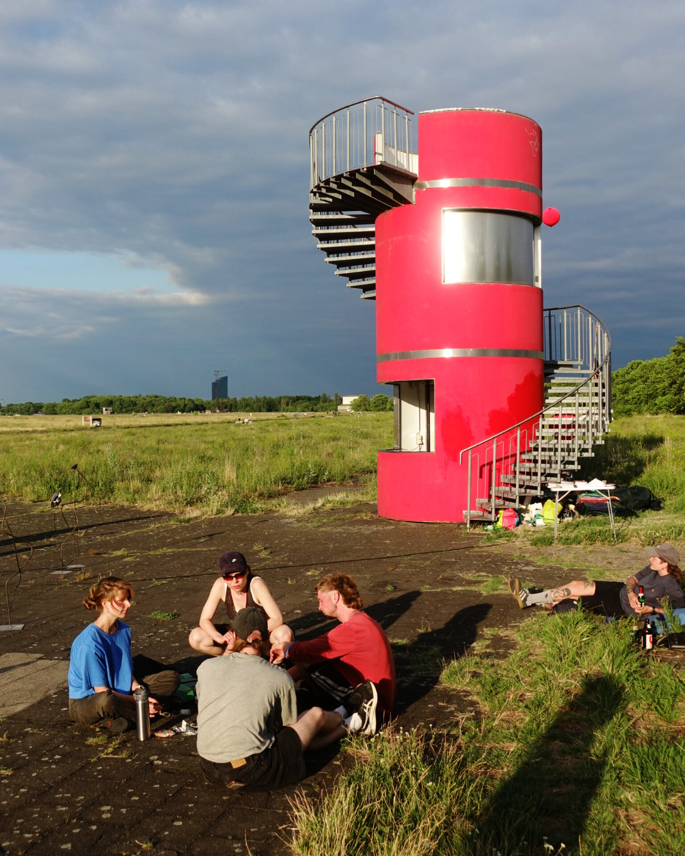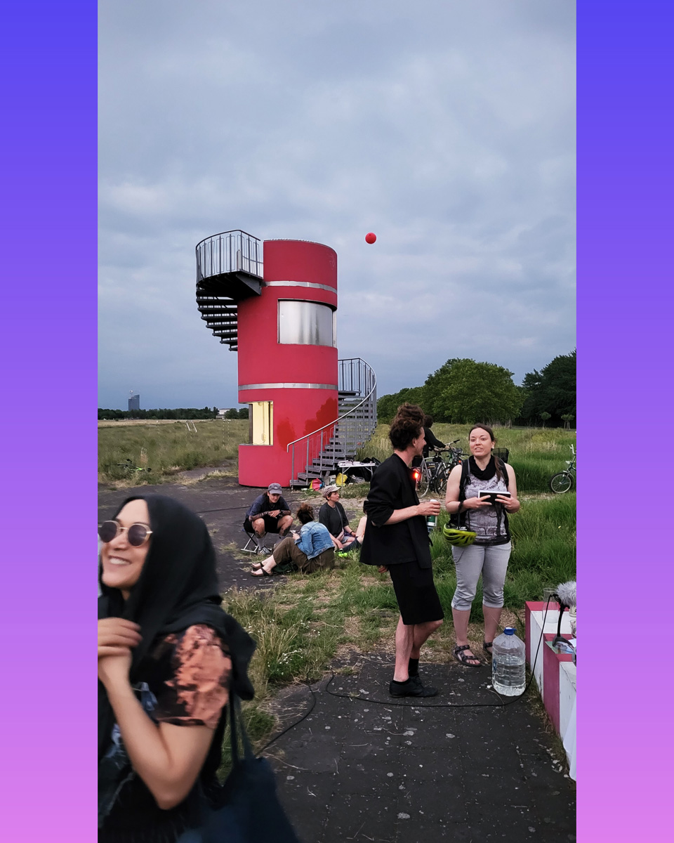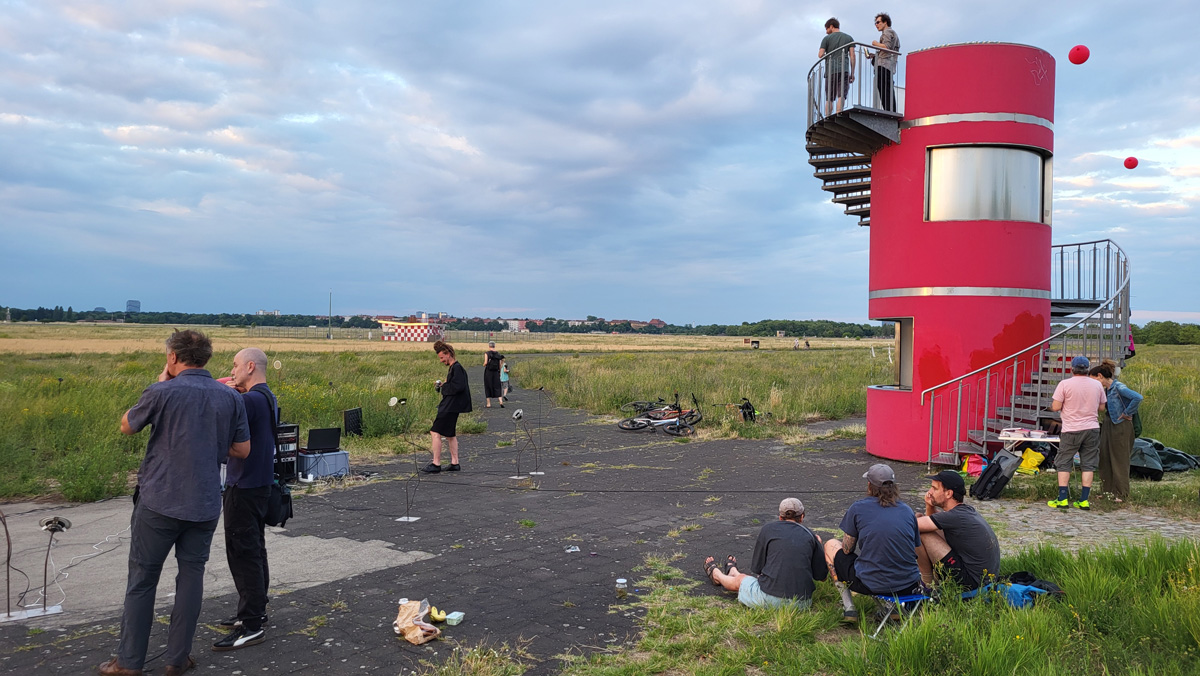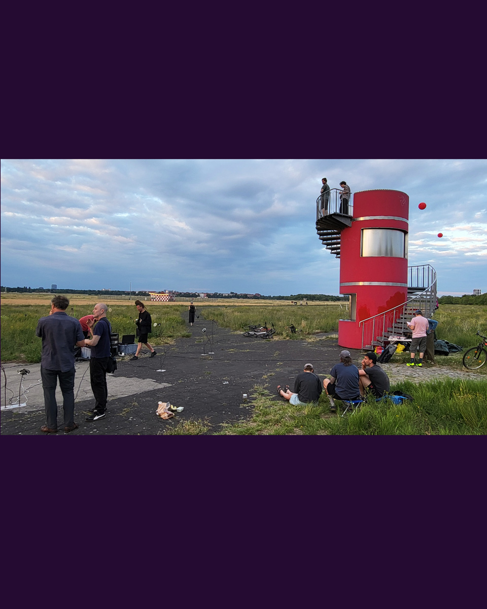 Against this backdrop, RADIO SCAPES understands the Tempelhofer Feld as a transmission space, where acoustic, historical and political impulses intersect and merge. The spatial basis for this is formed by the red tower at the southern end of the field, which is the base of POV Gallery, a new project and exhibition space with a focus on Eastern European art and culture. With its cylindrical architecture and open rooftop platform, the tower resembles an abandoned transmitter mast. For RADIO SCAPES, it becomes the starting point for sonic explorations and a temporary broadcasting station in public space.