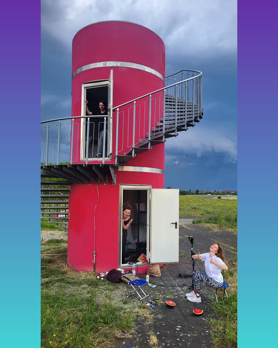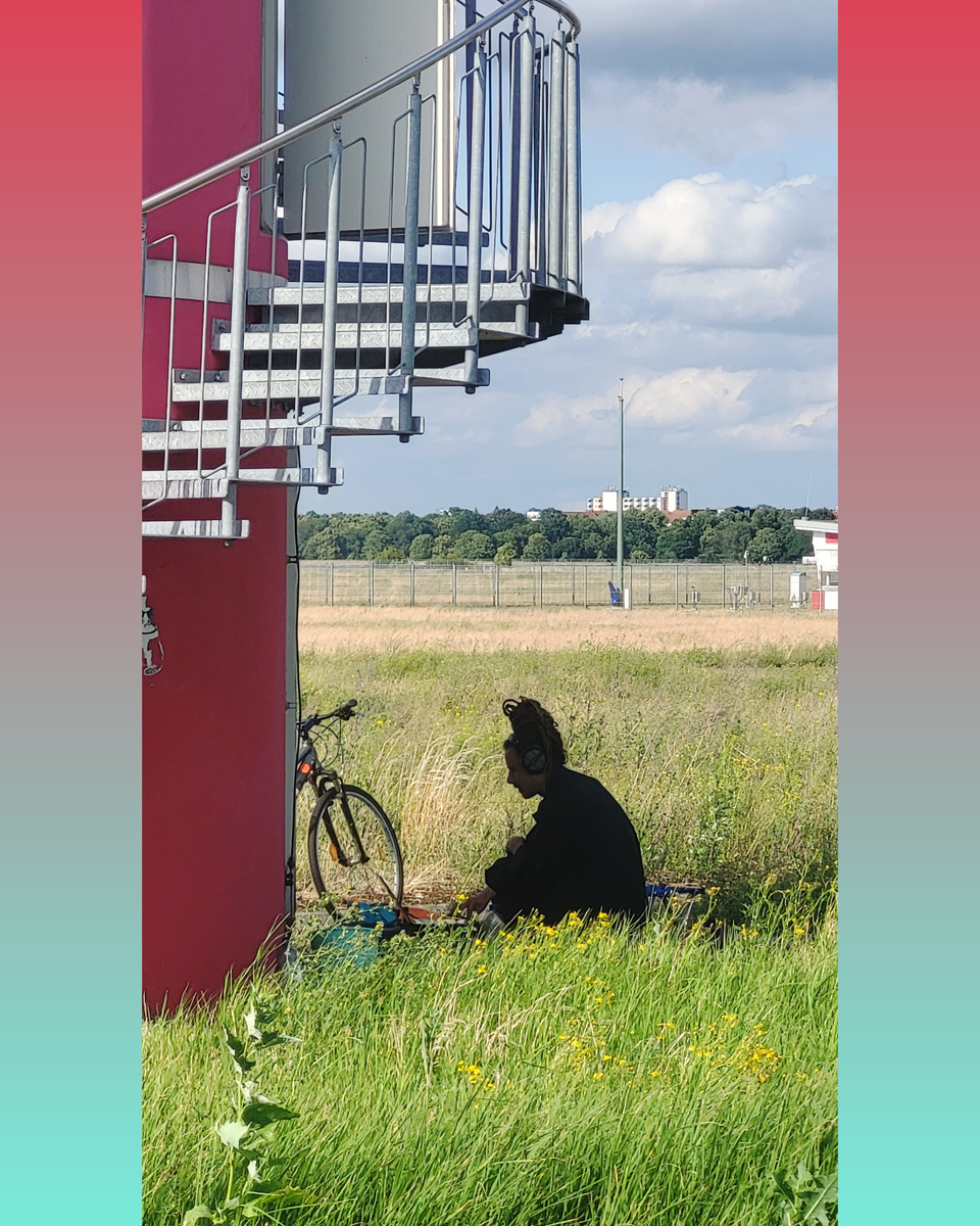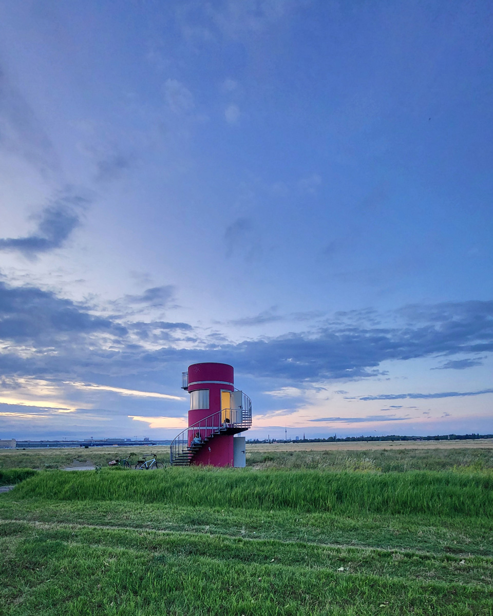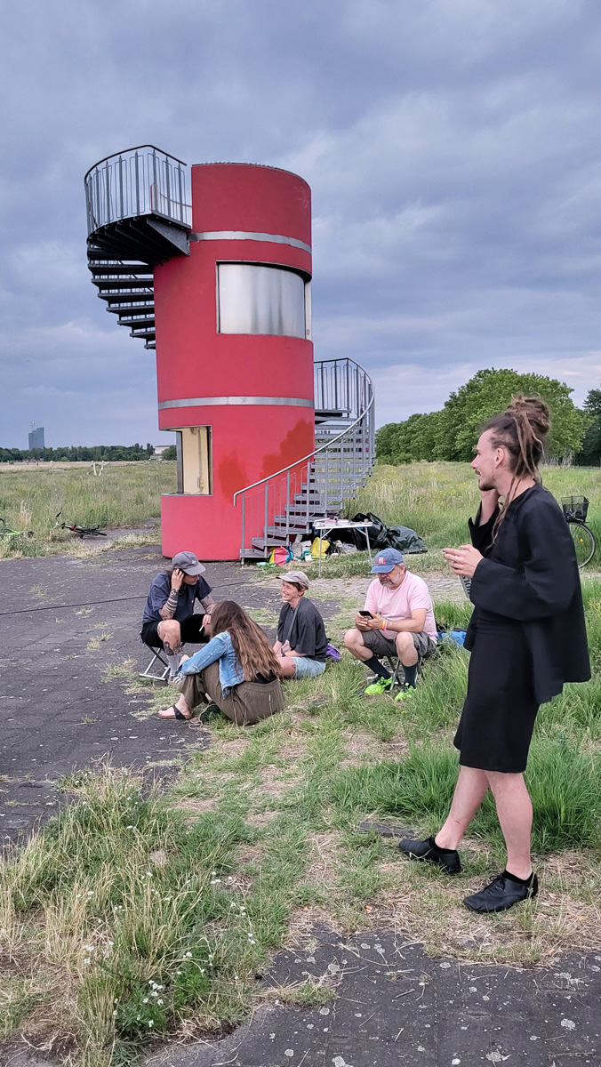Against this backdrop, RADIO SCAPES understands the Tempelhofer Feld as a transmission space, where acoustic, historical and political impulses intersect and merge. The spatial basis for this is formed by the red tower at the southern end of the field, which is the base of POV Gallery, a new project and exhibition space with a focus on Eastern European art and culture. With its cylindrical architecture and open rooftop platform, the tower resembles an abandoned transmitter mast. For RADIO SCAPES, it becomes the starting point for sonic explorations and a temporary broadcasting station in public space.