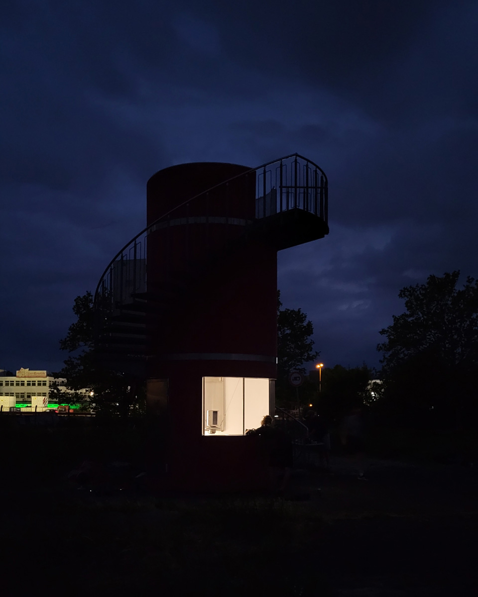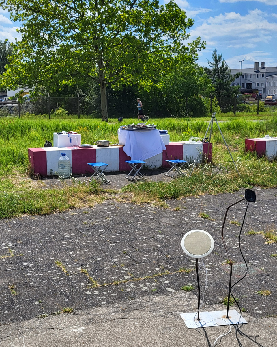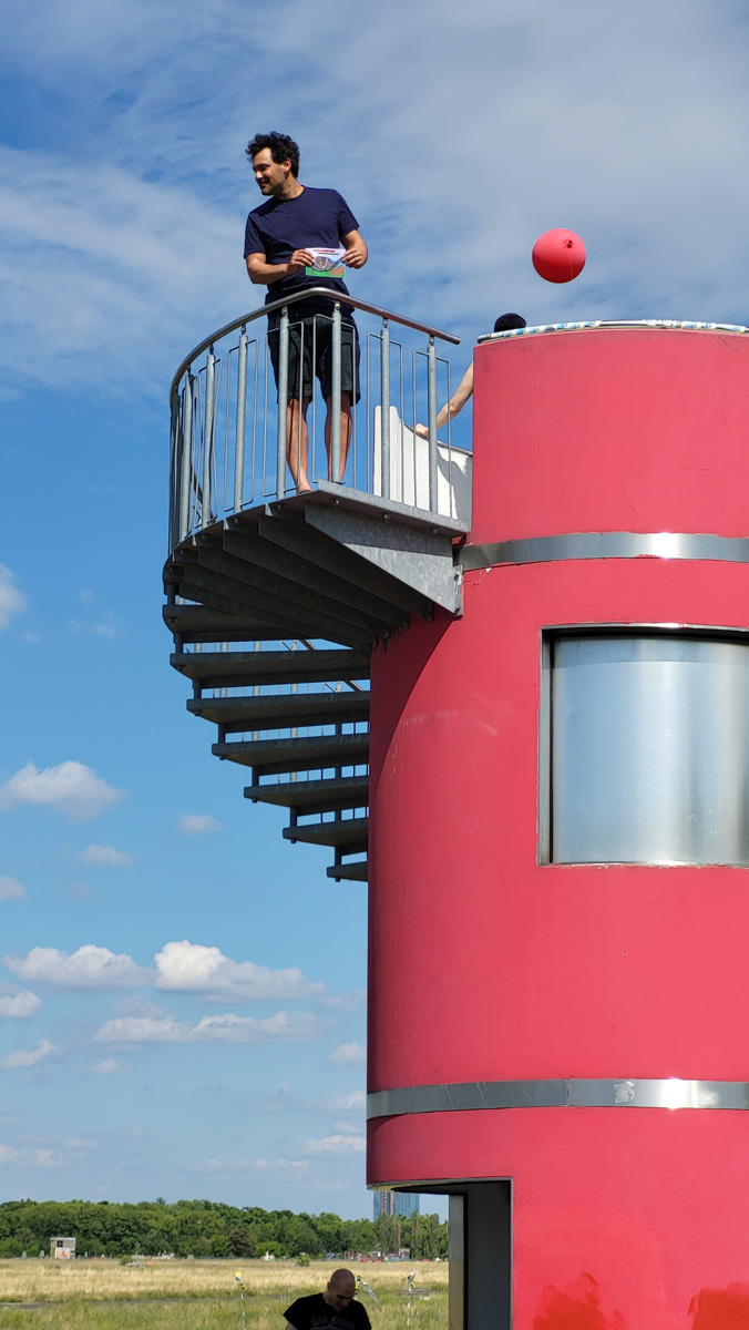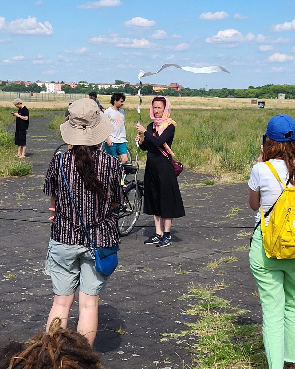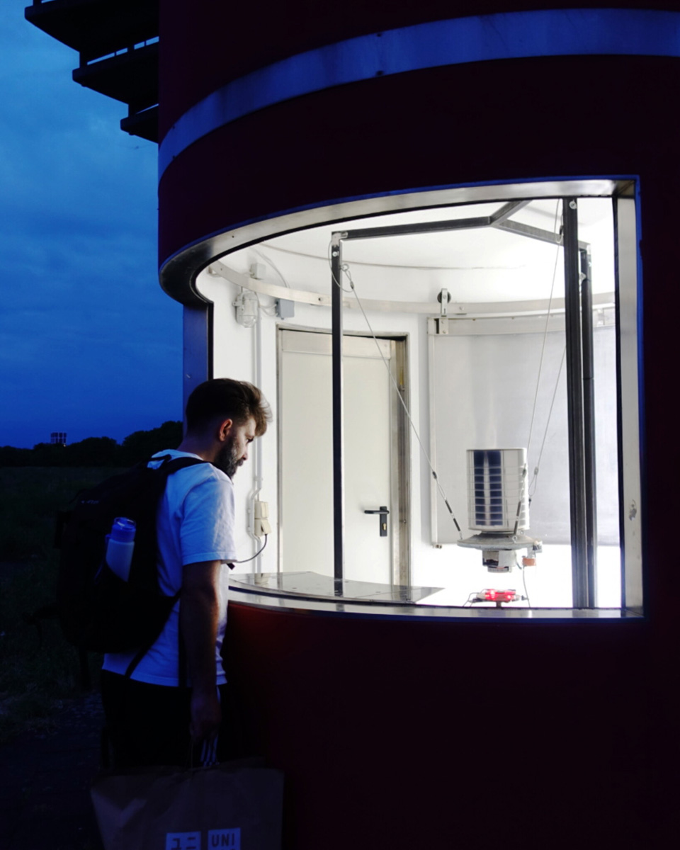 Against this backdrop, RADIO SCAPES understands the Tempelhofer Feld as a transmission space, where acoustic, historical and political impulses intersect and merge. The spatial basis for this is formed by the red tower at the southern end of the field, which is the base of POV Gallery, a new project and exhibition space with a focus on Eastern European art and culture. With its cylindrical architecture and open rooftop platform, the tower resembles an abandoned transmitter mast. For RADIO SCAPES, it becomes the starting point for sonic explorations and a temporary broadcasting station in public space.