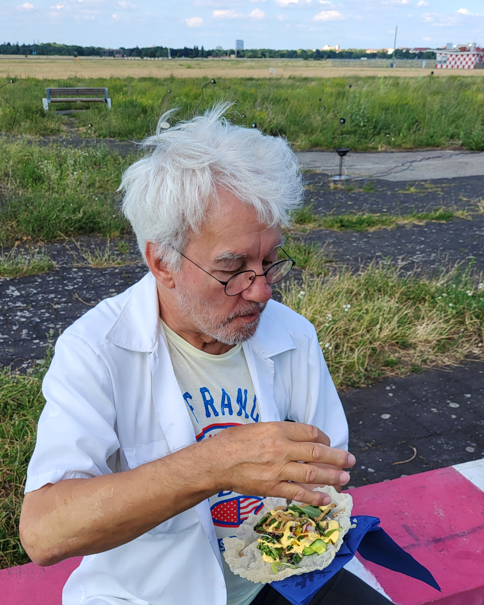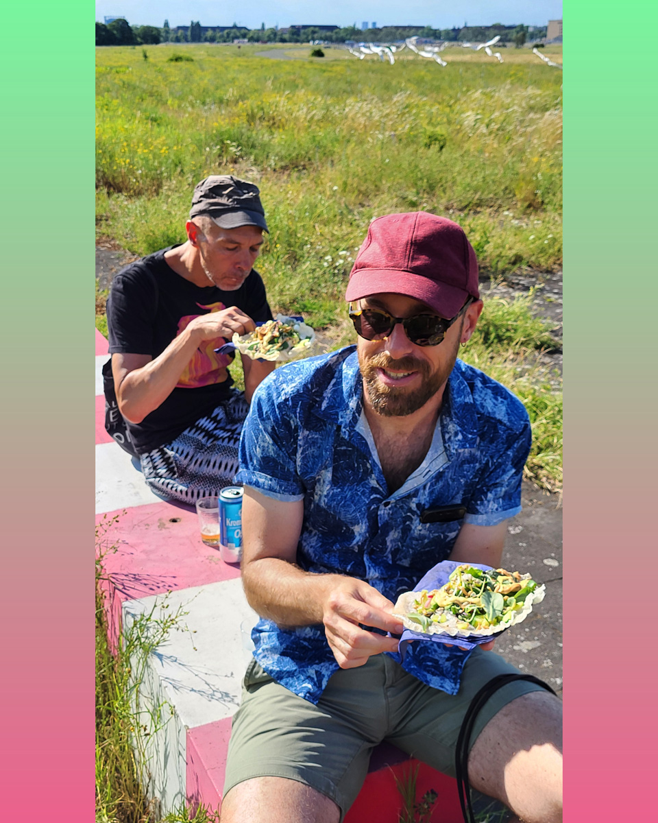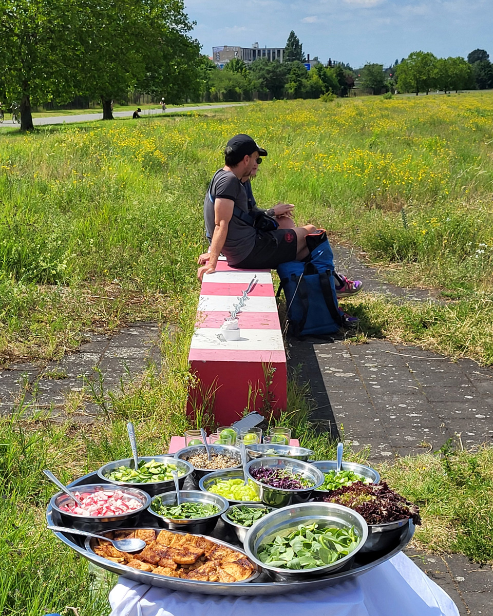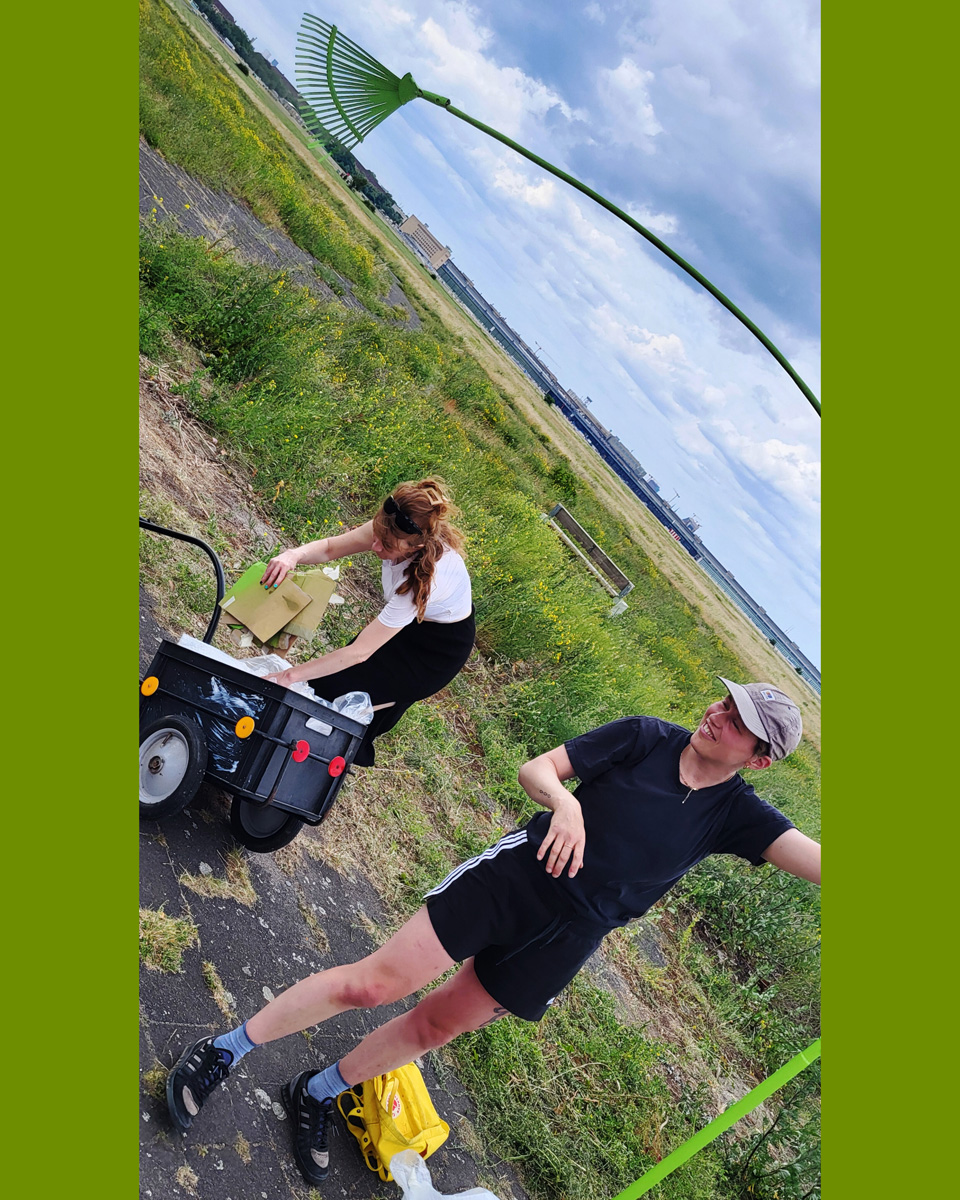 Auch die Geschichte des Geländes ist vielschichtig. Als ehemaliger Flughafen war Tempelhof ein Ort militärischer Präsenz, Zwangsarbeit aber auch westlicher Symbolpolitik. Während der deutschen Teilung war er eine der wenigen Zugangsmöglichkeiten nach West-Berlin. Sichtbare und unsichtbare Grenzen wie Bezirkslinien, Zäune und Wege durchziehen das Feld bis heute. Es bleibt ein Raum der Übergänge und der kontinuierlichen Überschreibungen.