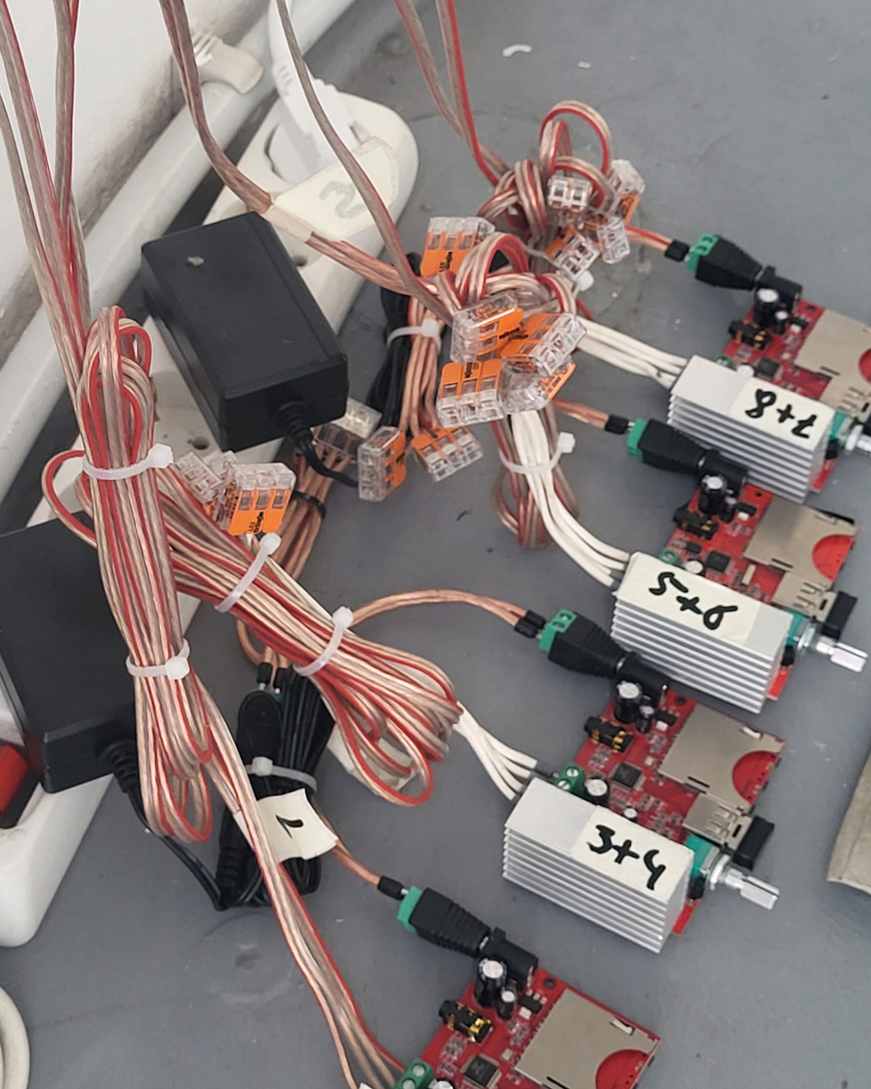 The exhibition features works by seven artists from the collective of the association WRG Studios e.V. from Braunschweig, Torben Laib, Felix Mayer, Janis Binder, Constantin Carstens, Franziska Pester, Anne Posselt, and Lukas Harris. Their practices engage with sound, acoustic perception and the potentials of transmission.