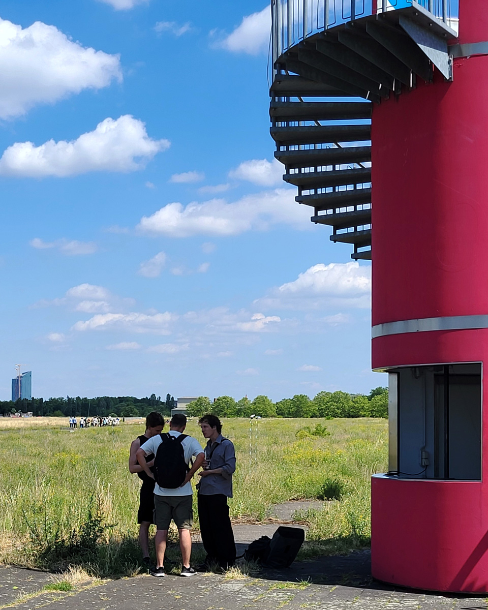 The history of the site is equally complex. As a former airport, Tempelhof was a place of military activity, forced labor but also Western symbolic politics. During the division of Germany, it was one of the few points of access to West Berlin. Visible and invisible borders such as district lines, fences and transit paths still traverse the field today. It remains a space of transitions and ongoing overwriting.